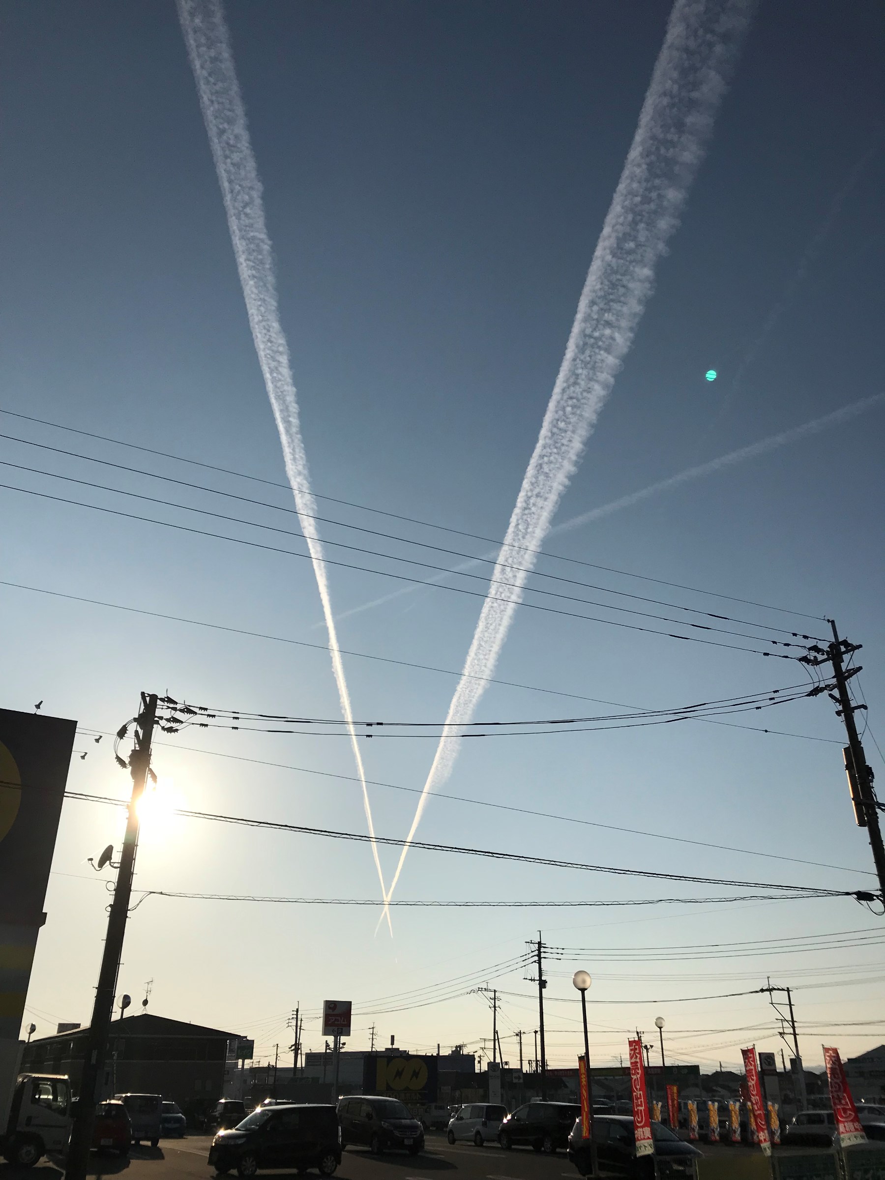 先日空を見ると飛行機が二機飛んでおり、飛行機雲が二本出来ていました!!