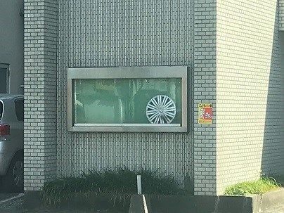 なんと!!ビルの掲示板の所にホイールキャップが・・・笑
