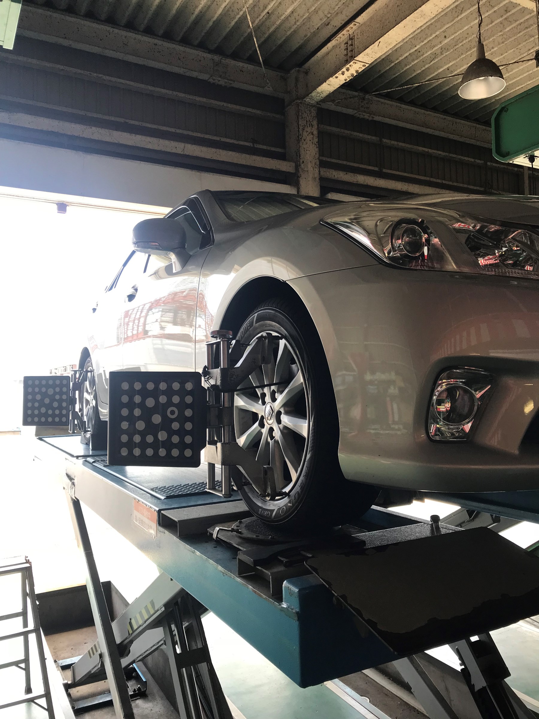 タイヤ交換後にはタイヤの軸の調整アライメントを行いました!