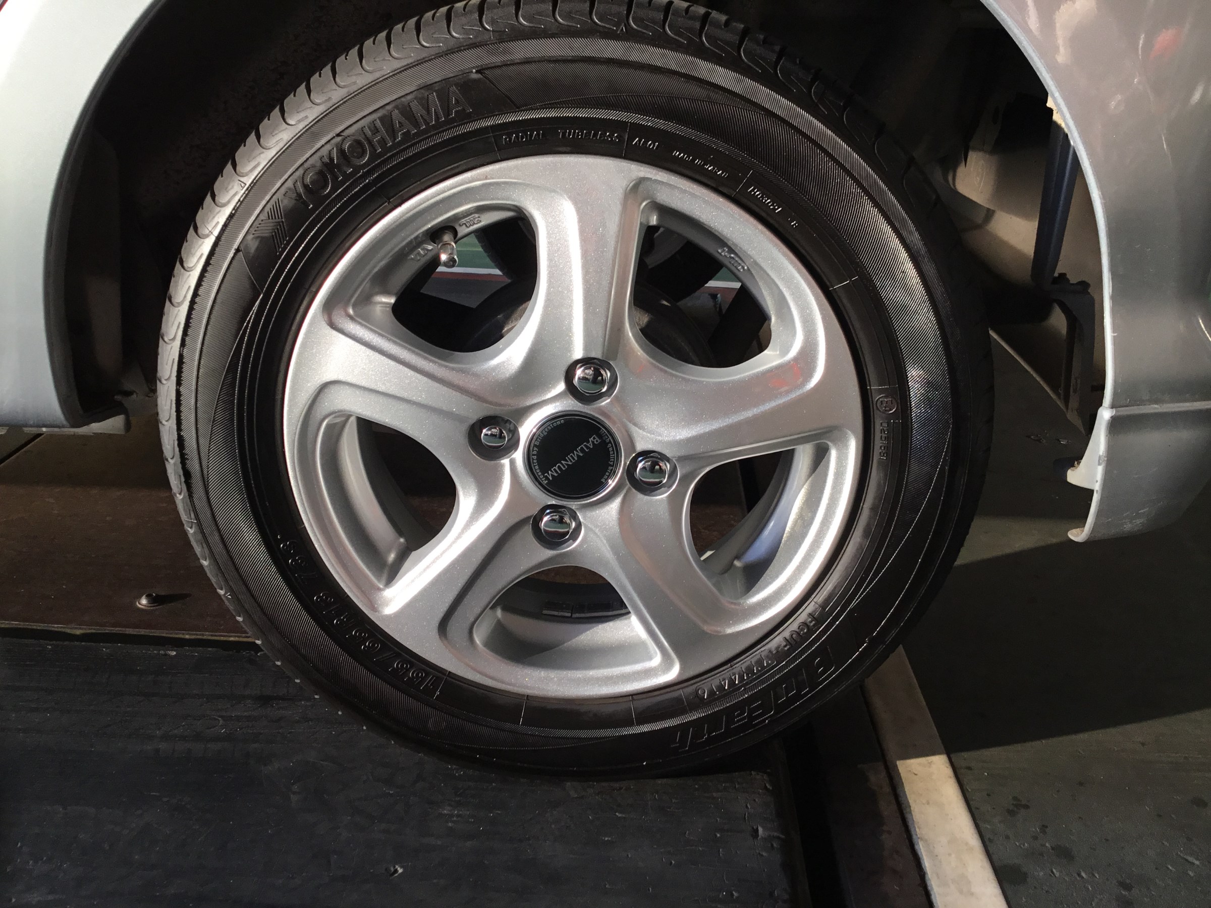 交換前はスチールホイールがついていましたが、今回はアルミホイールに交換しました!!