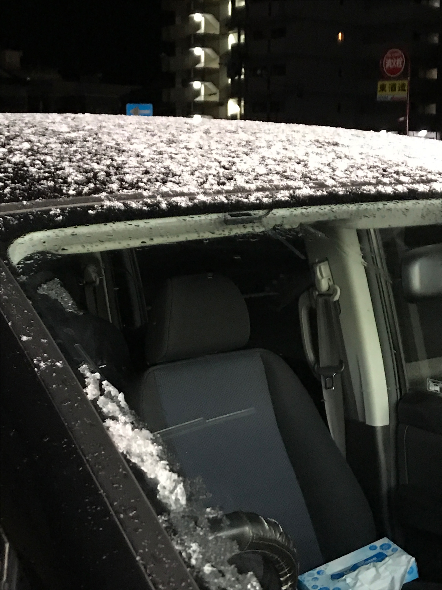 寒いと思って外を見ると車の屋根に