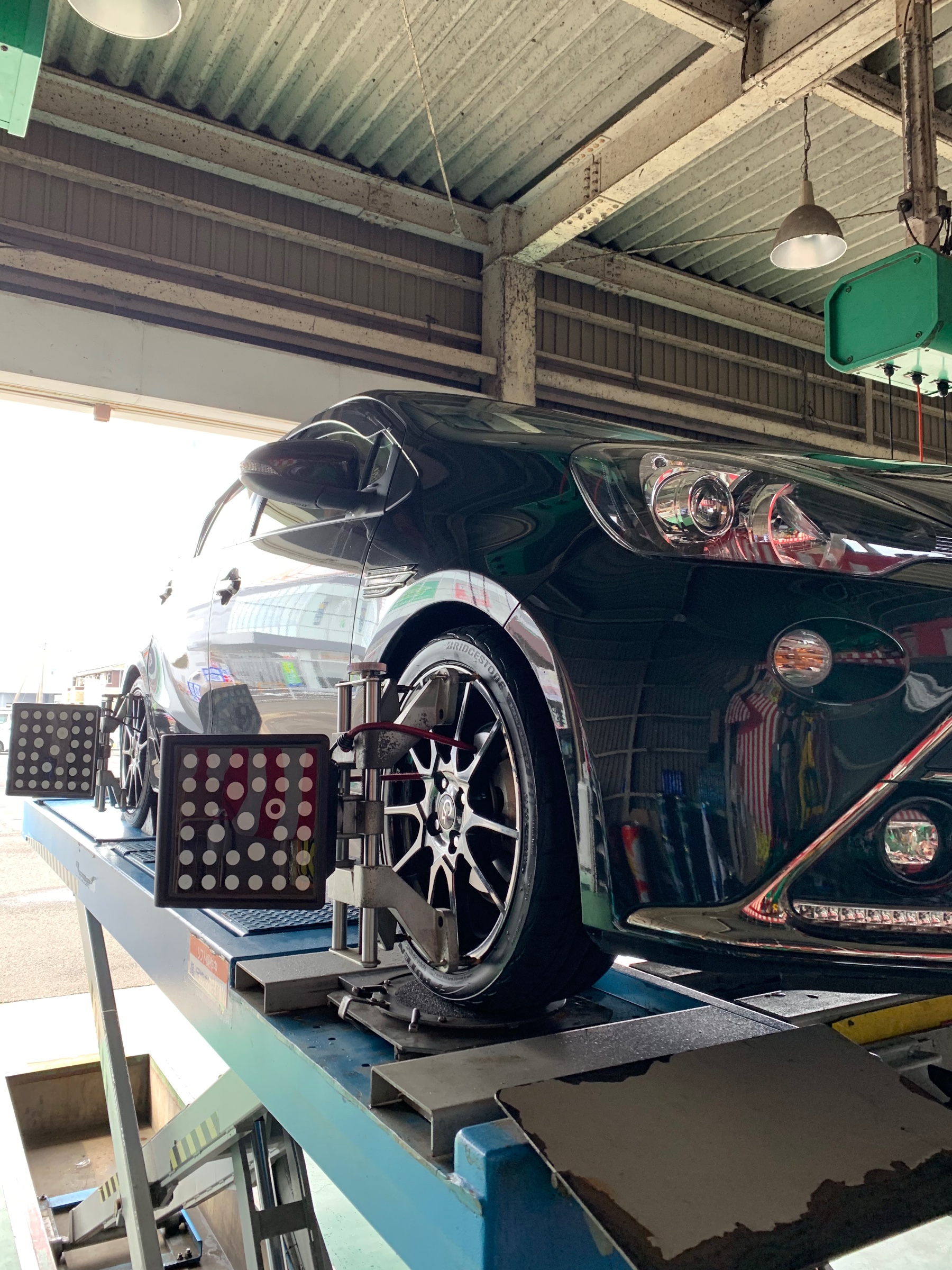 タイヤ交換後はタイヤの軸の調整アライメントまで行いました!