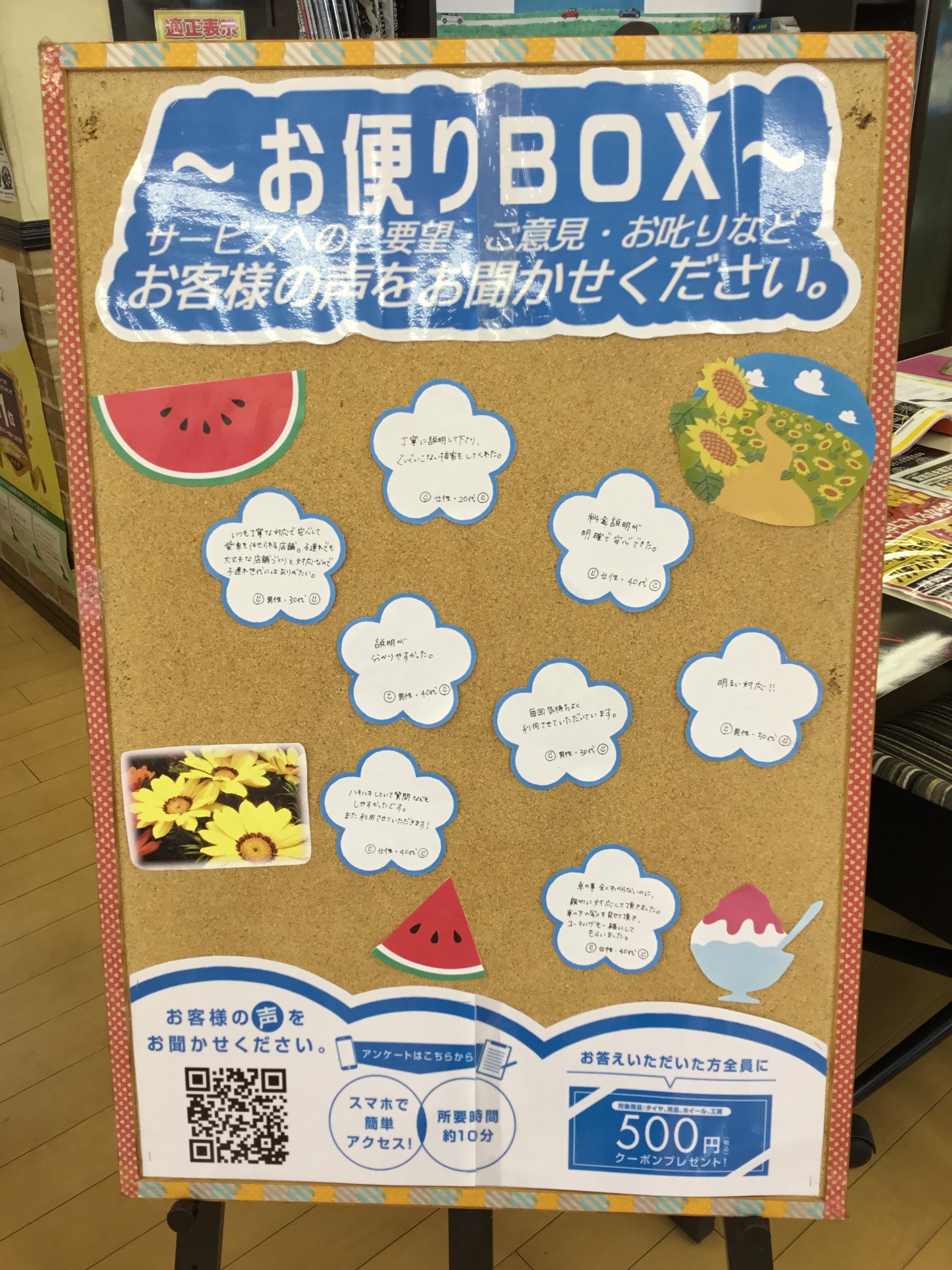 当店では、アンケートのご協力をお願いしており、多くのお言葉を頂いています!!