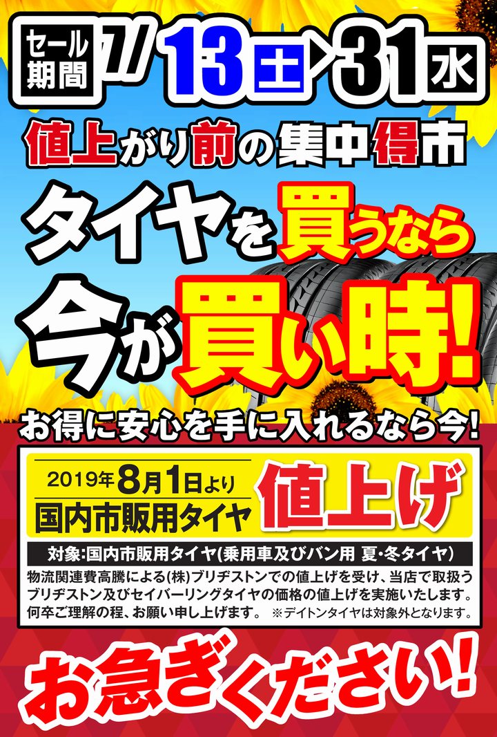 あと、約1週間後!タイヤが値上がりしてしまいます!!