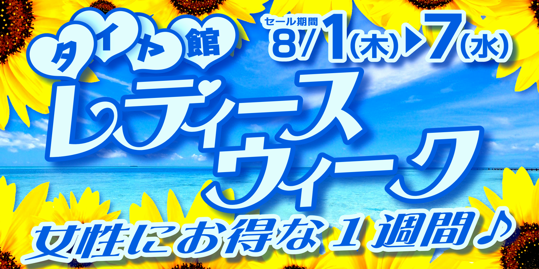 8/1(木)~7(水)までの期間、レディースウィーク開催します!