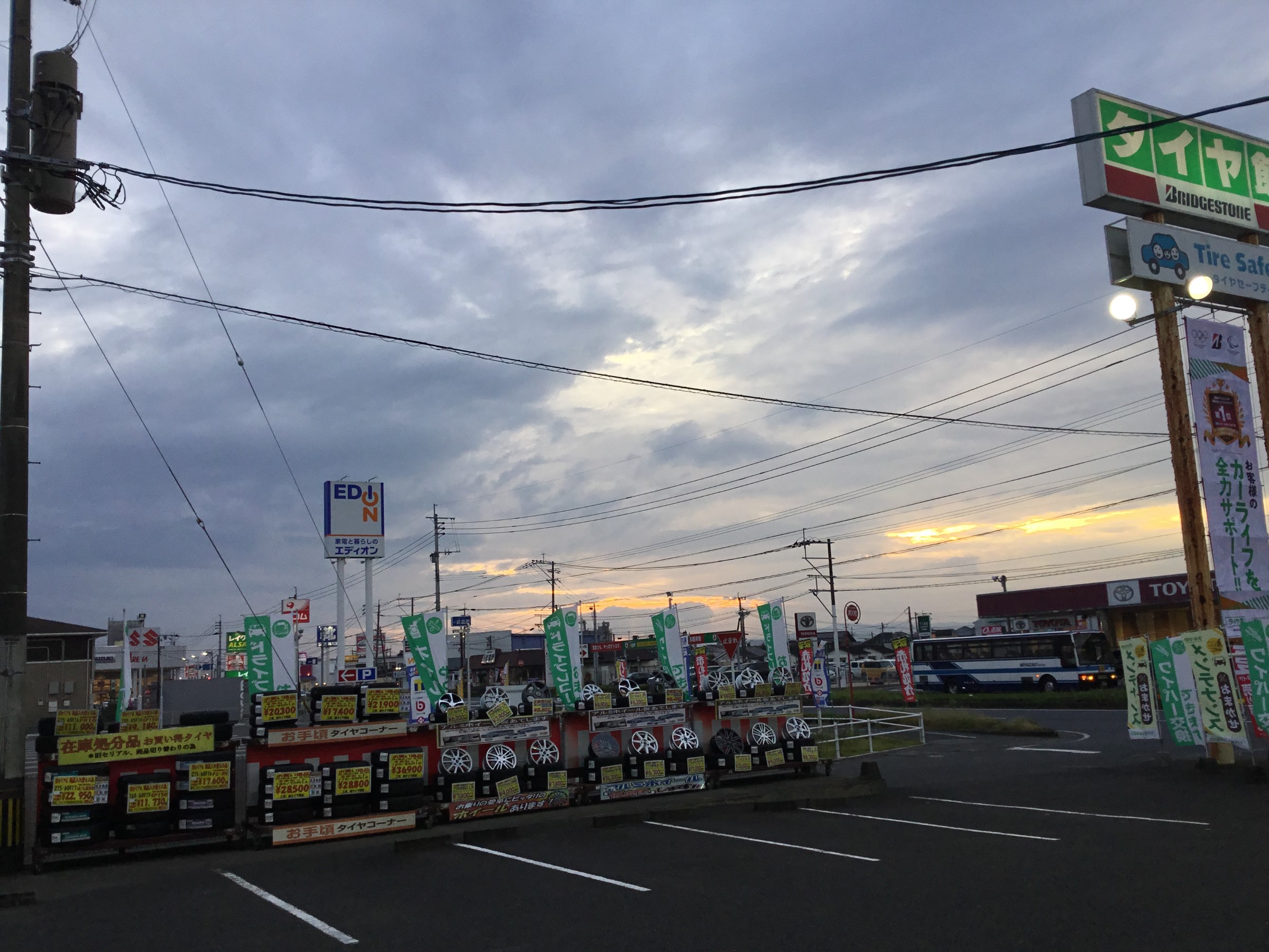 最近だんだんと・・・('_') ポスト 2019年10月17日 こんにちは!タイヤ館都城店の畑田です!^^ この写真、実は夕方5時に撮った写真なんですが・・・・。 だんだんと暗くなってくるのが早くなってきましたね!汗 冬が近づいている証拠ですね~!(^^)! あっという間に暗くなっちゃうので お車を運転される時は早めにライトをつけましょう(^^)/ では、安全運転で。。。。!! 担当:はただ