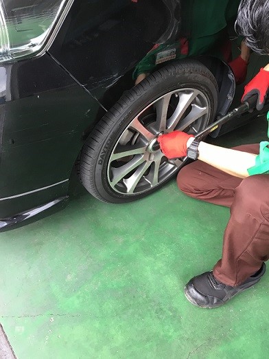 タイヤの空気圧の再点検&ナットの増し締めの再点検をおこなってます!!
