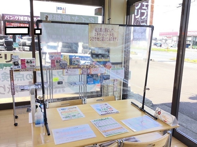 安心してご来店下さい(^^)/ ポスト 2020年4月24日 こんにちは!タイヤ館都城店です(^^)/ 当店では、新型コロナウイルス感染拡大に伴い、予防策として カウンターと待合コーナーにエチケットシートをつけさせて頂いてます。 また、机は間隔をあけた配置となっております。 対策としてスタッフのマスク着用の徹底、アルコール消毒液の完備をおこなっております。 安心してご来店下さい!(^^)! 担当:はただ
