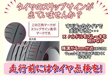 タイヤの交換時期ではないですか?タイヤのスリップサインはここで確認!