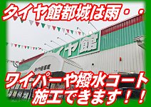 連休最終日ですが雨になってしまいましたね・・ これから帰省される方や 梅雨に備えられたい方 ワイパーの状態はいかがでしょうか? ワイパーが問題なくても フロントガラスに撥水加工していれば 安全走行にも貢献できるんです♪ 気になった方は タイヤ館都城までお問合せください。 ***************...