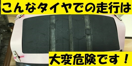 溝が無くなり、タイヤ内部のワイヤーが見えてしまっているタイヤは交換対象ですよ!