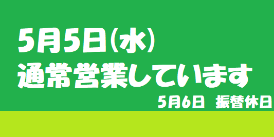 本日5月5日は通常通り営業をしております!