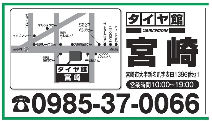 クルマのことなら何でもお任せ!あなたの街のタイヤ屋さん!タイヤ館宮崎!