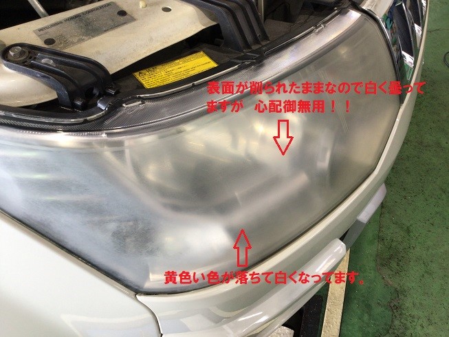 一通り削り終わるとこんな感じで白く曇ってますが 黄ばみはなくなってます。