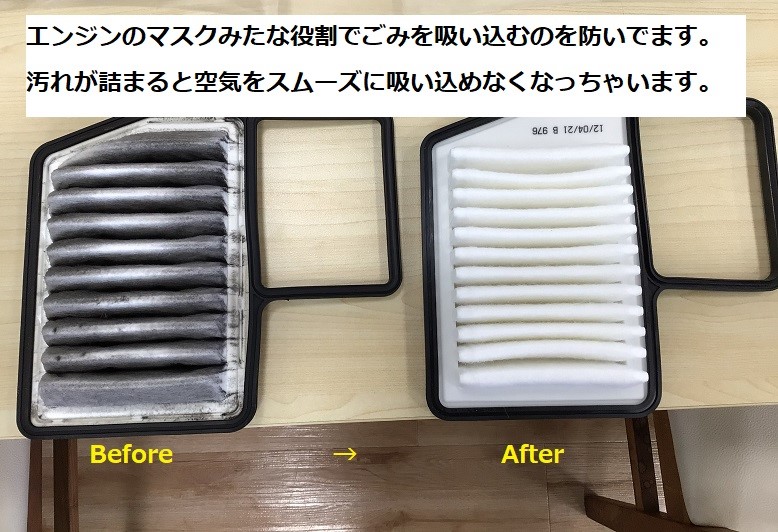 エアーエレメント スムーズに空気が吸えないと燃費の悪化や排気ガスが汚れてしまったり。