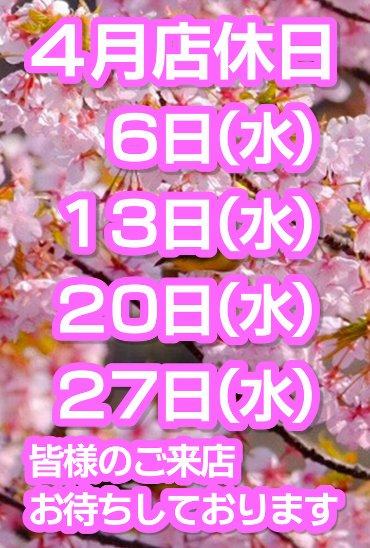4月6日(水)は店休日です。100km点検のお客様はお気をつけ下さい。