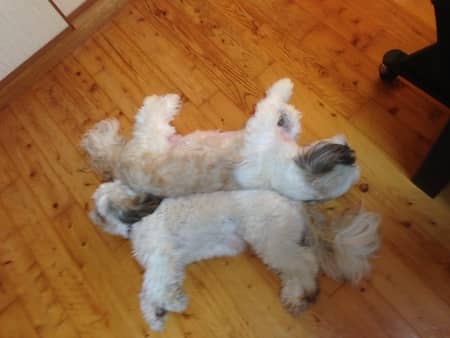 今朝、わんこ2匹が大暴れしていたのですが、暫くして気づくと静かになっていたので見