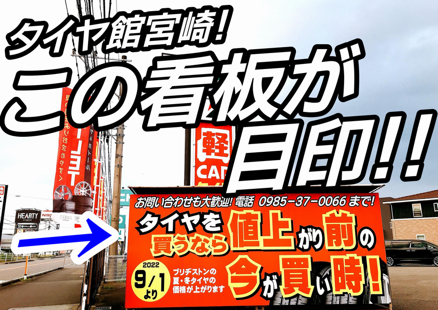 国道10号線沿い!タイヤ館宮崎店はこの看板が目印です!!