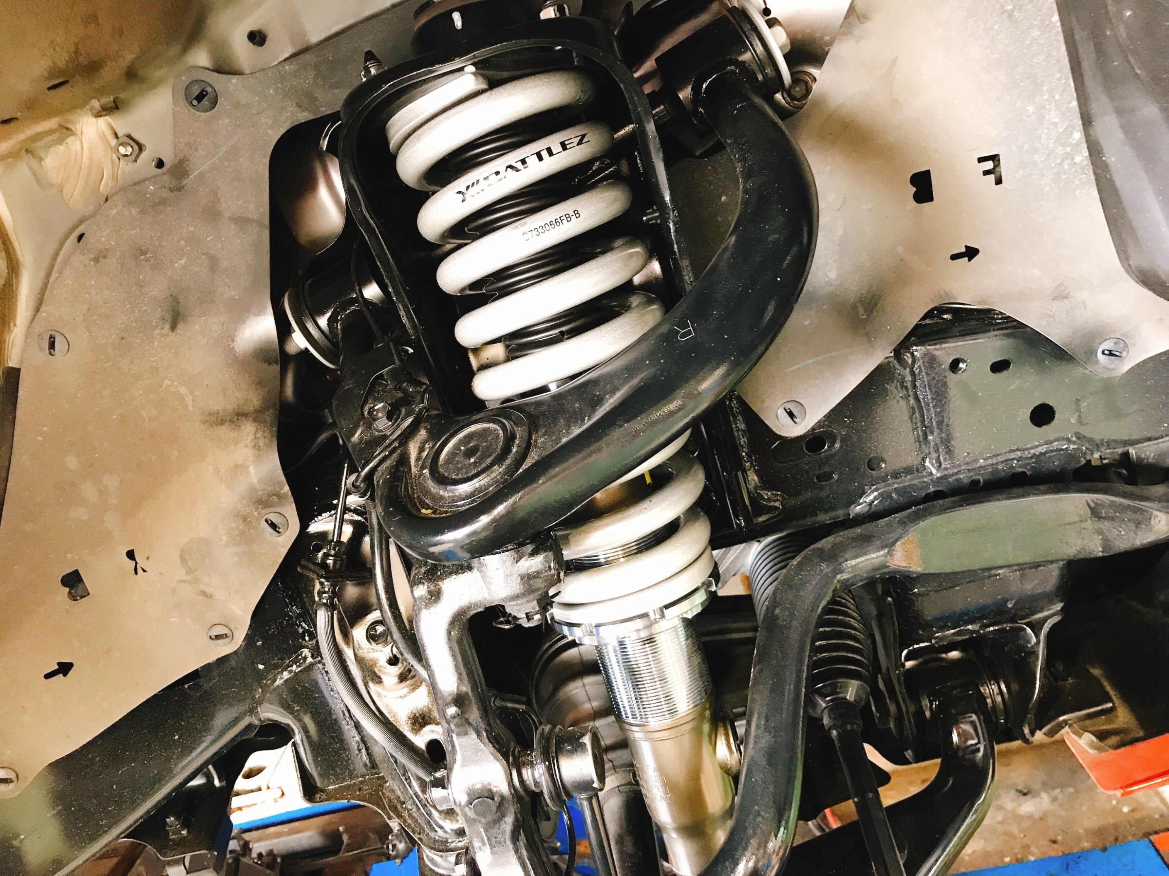 という特性を活かしたコイルスプリングとリフトアップブロックで前後共にリフトアップ。