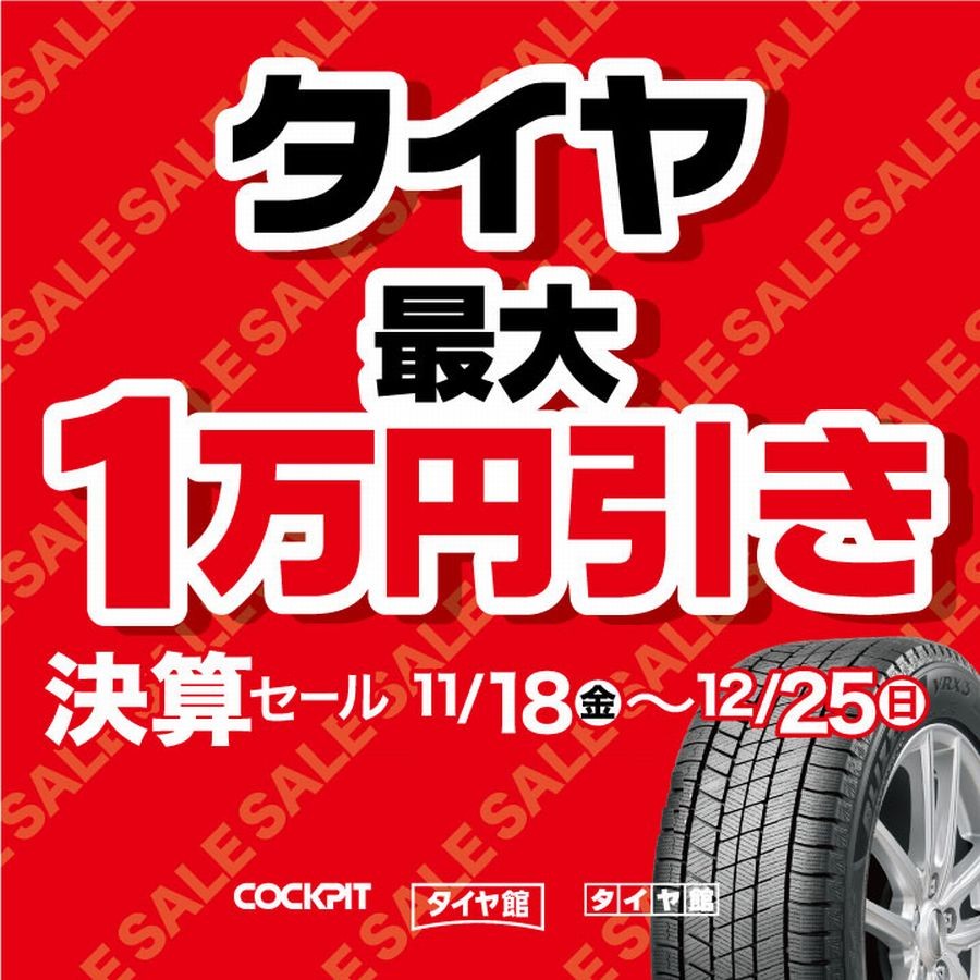 タイヤお買い求めのお客様必見!タイヤ最大1万円引き!応募者全員もれなく当たる決算セール開催中!!