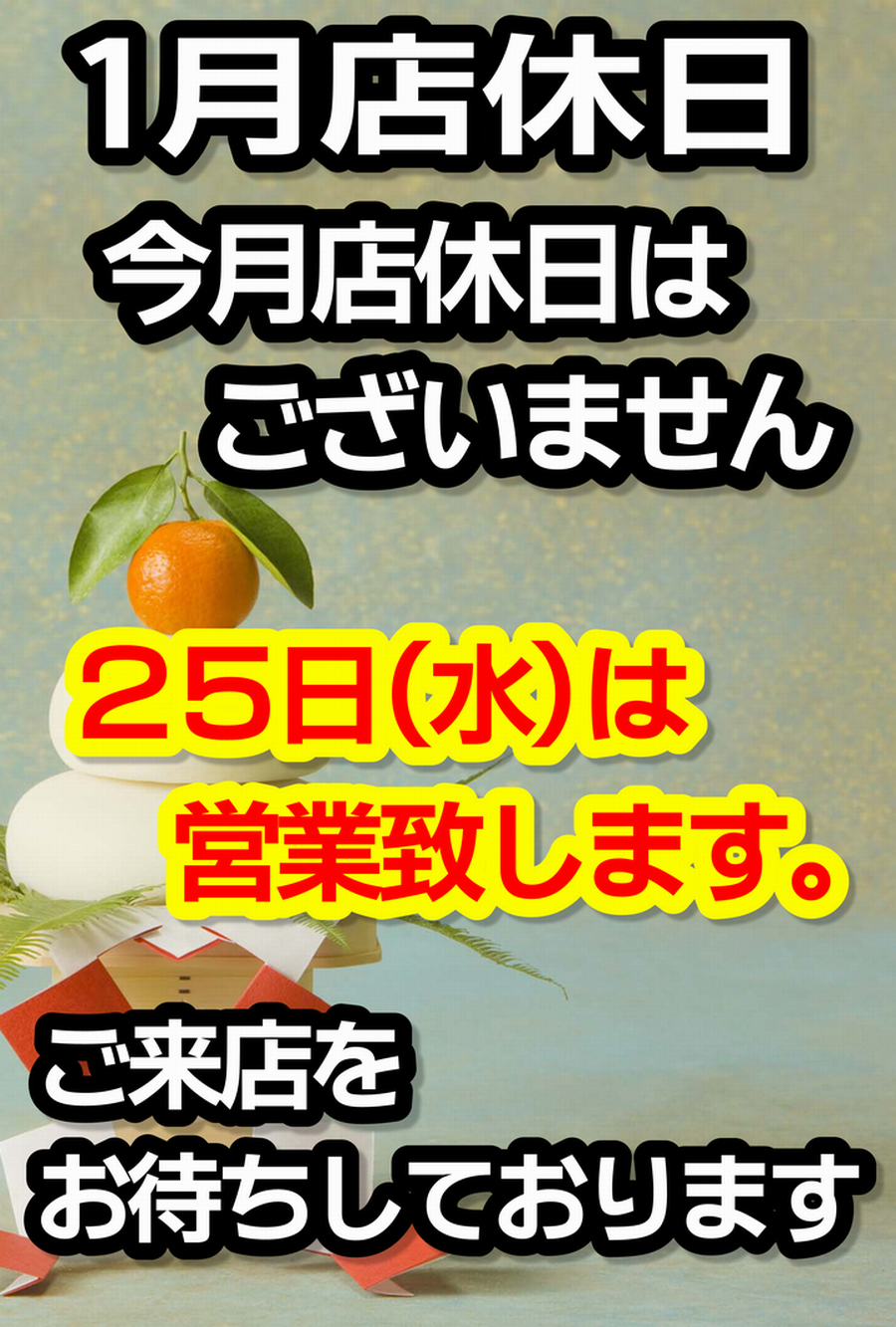1月25日(水)は営業致します。 ポスト 2023年1月23日 25日(水)は営業致します。 ご相談や作業のご予約もWEBでできます。 作業予約は⇒ ご相談や作業ご予約はコチラ 皆様のご来店をスタッフ一同お待ち申し上げます。