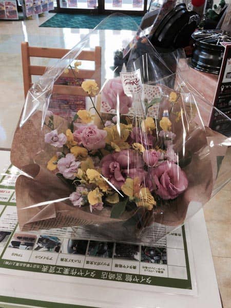 なんだろう?と思っているとお花やさんが可愛らしい花束を持って店内に入ってきました
