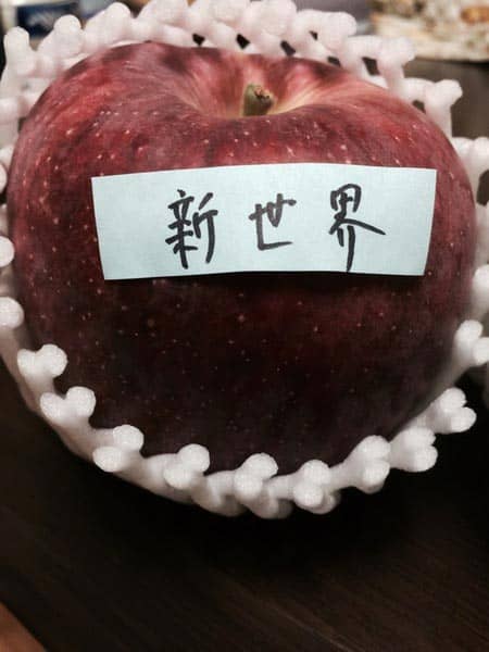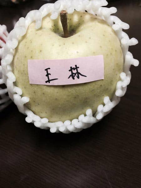 グリーンと赤の「青林と新世界」という名前のリンゴでした。