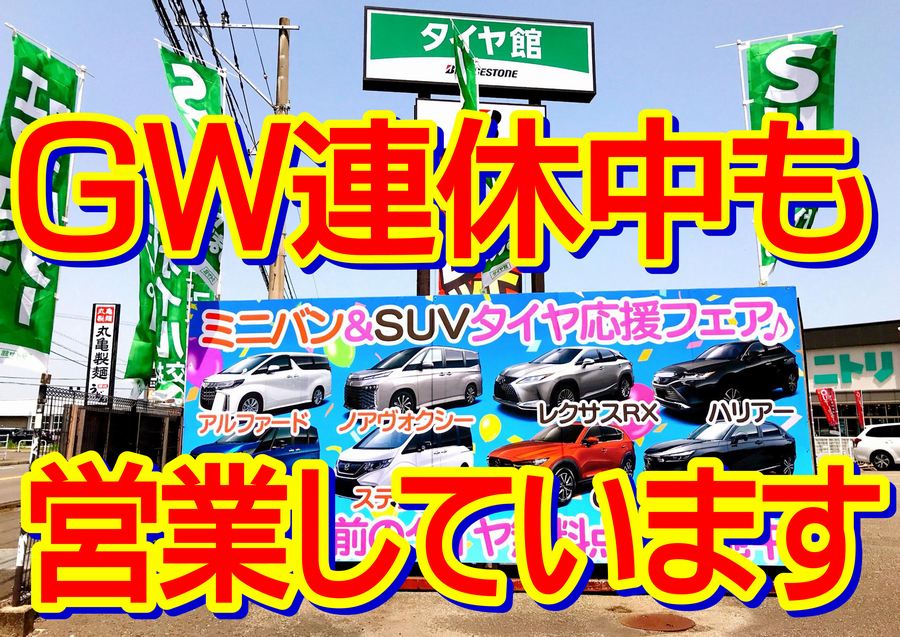 ゴールデンウィーク!タイヤ点検もおまかせ!連休中も営業しています!!