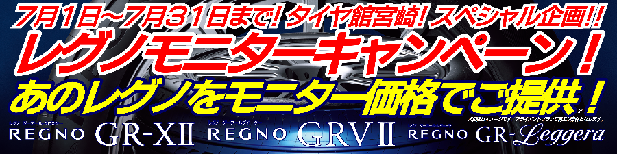 タイヤ館宮崎限定企画!あのレグノをモニター価格でご提供!!
