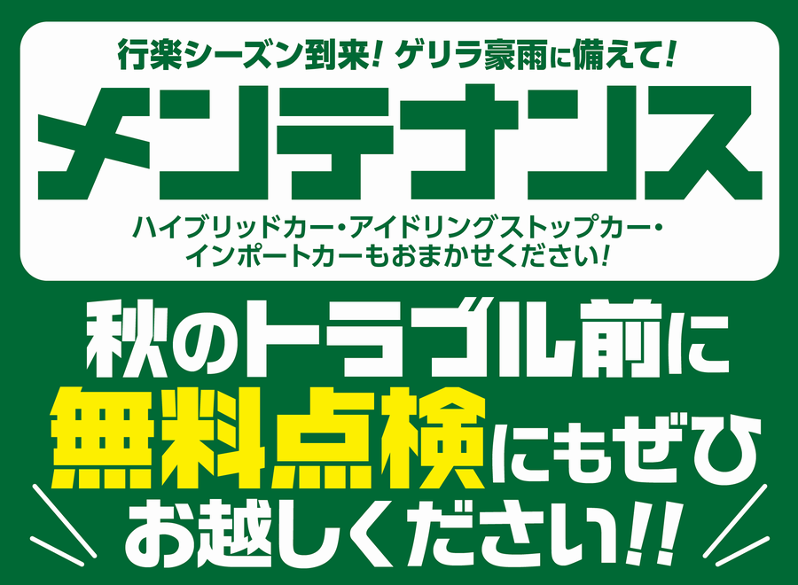 タイヤ・エンジン回り等、もちろん無料での点検となっておりますので是非ご利用ください!