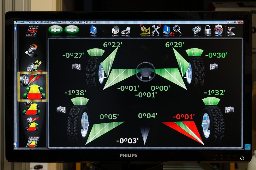 ちなみにこちらのトヨタ・プリウスはフロントのトーおよびリアのトーが調整できます。