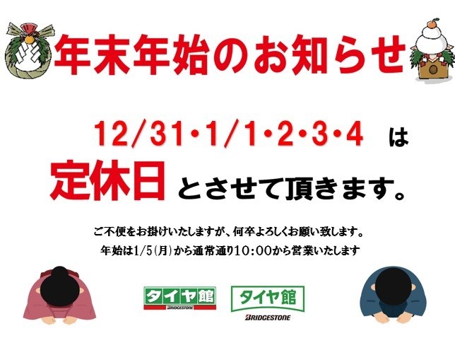 年末年始の営業日のご案内になります。