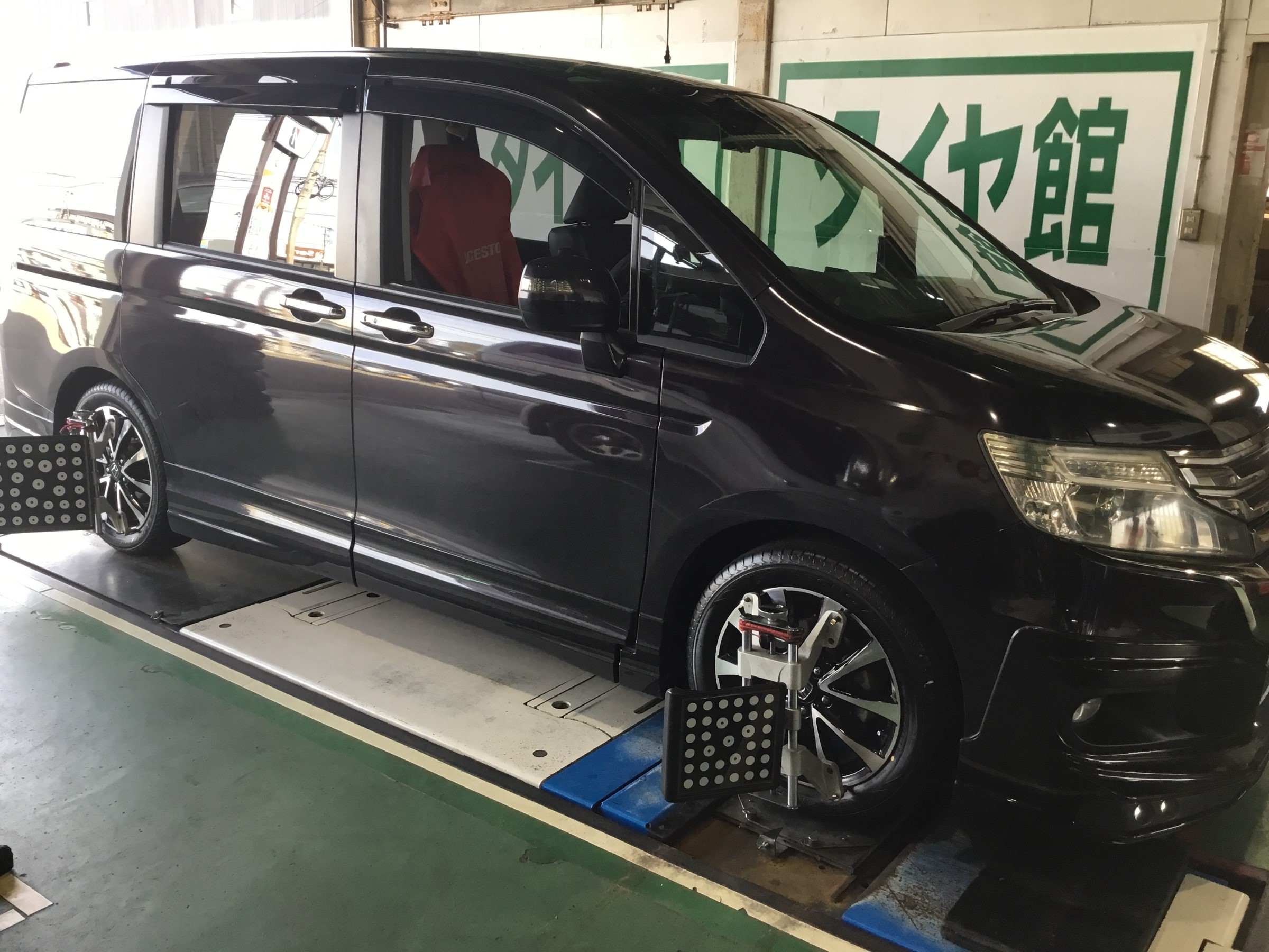 ステップワゴンのアライメント調整のことなら宮崎市新名爪 10号線沿いのタイヤ館宮崎までぜひ!!