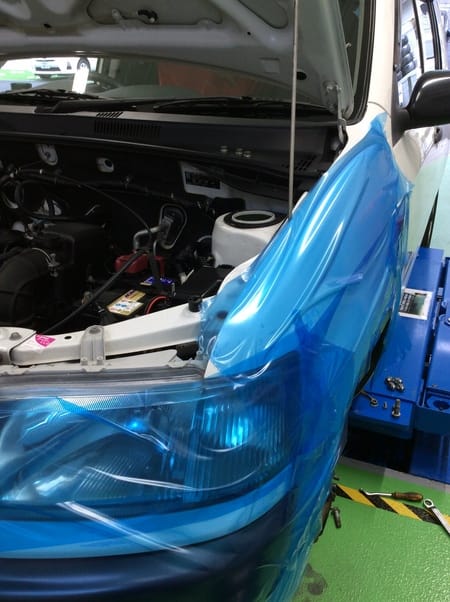 作業中も大切なお客様のお車をキズなどから守るためしっかり養成してからおこなってます。