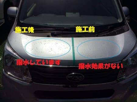 水洗い洗車後、スプレーして拭き取るだけの簡単作業!! 水が残っていても施工できます。
