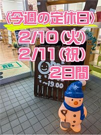 2月10日(火)・2月11日(祝)2日間定休日となります