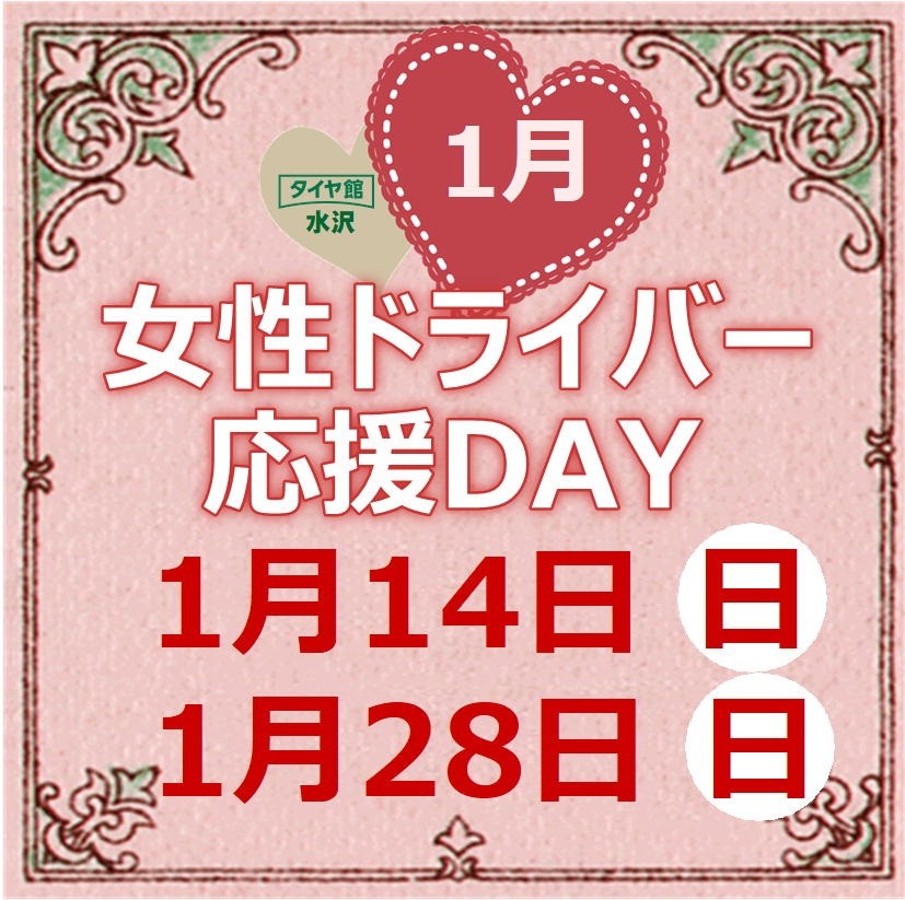 明日、1月14日(日)は―★女性ドライバー応援DAY★