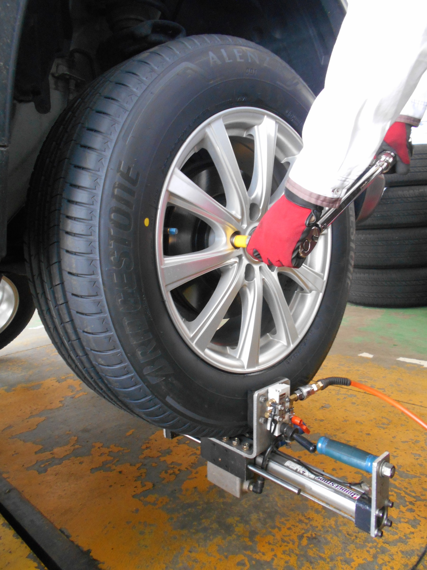 タイヤの取付角度のズレを矯正する「アライメント」へ。
