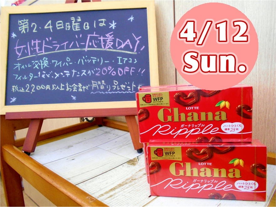 明日4月12日(日)は―★女性ドライバー応援DAY★