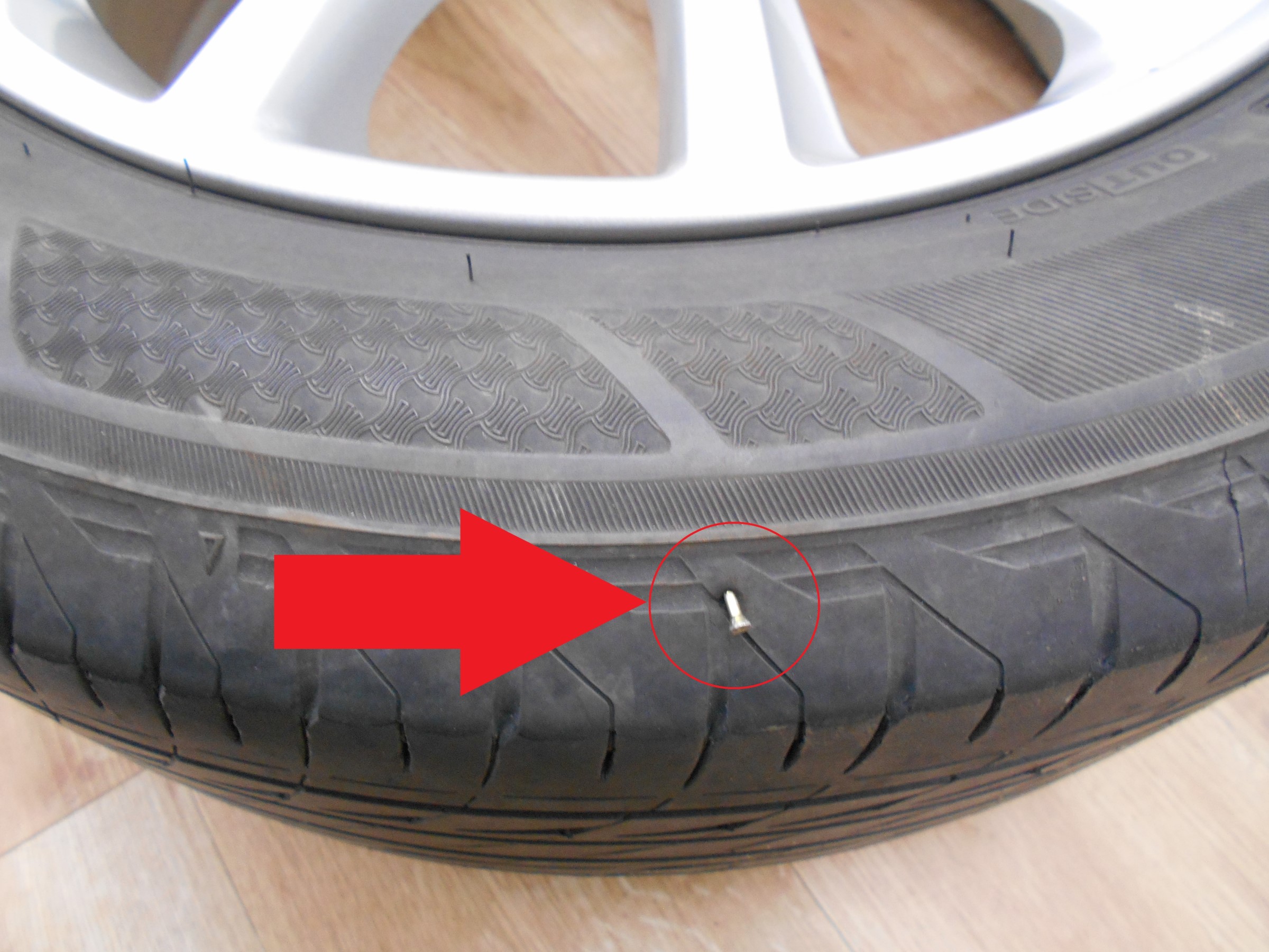 〈タイヤ側面のパンクの場合〉