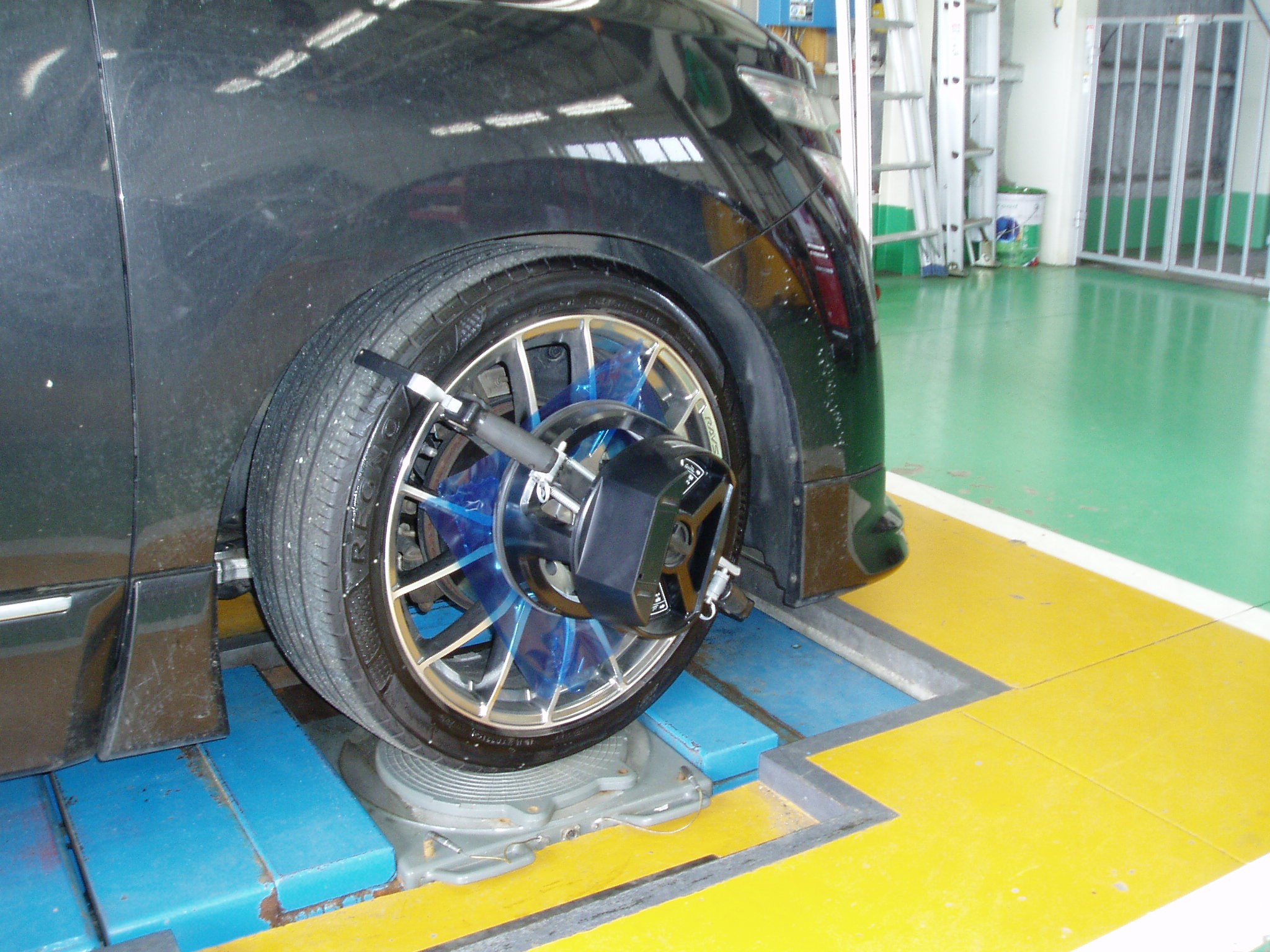 エルグランドの、夏タイヤへの脱着&アライメント測定がありました!