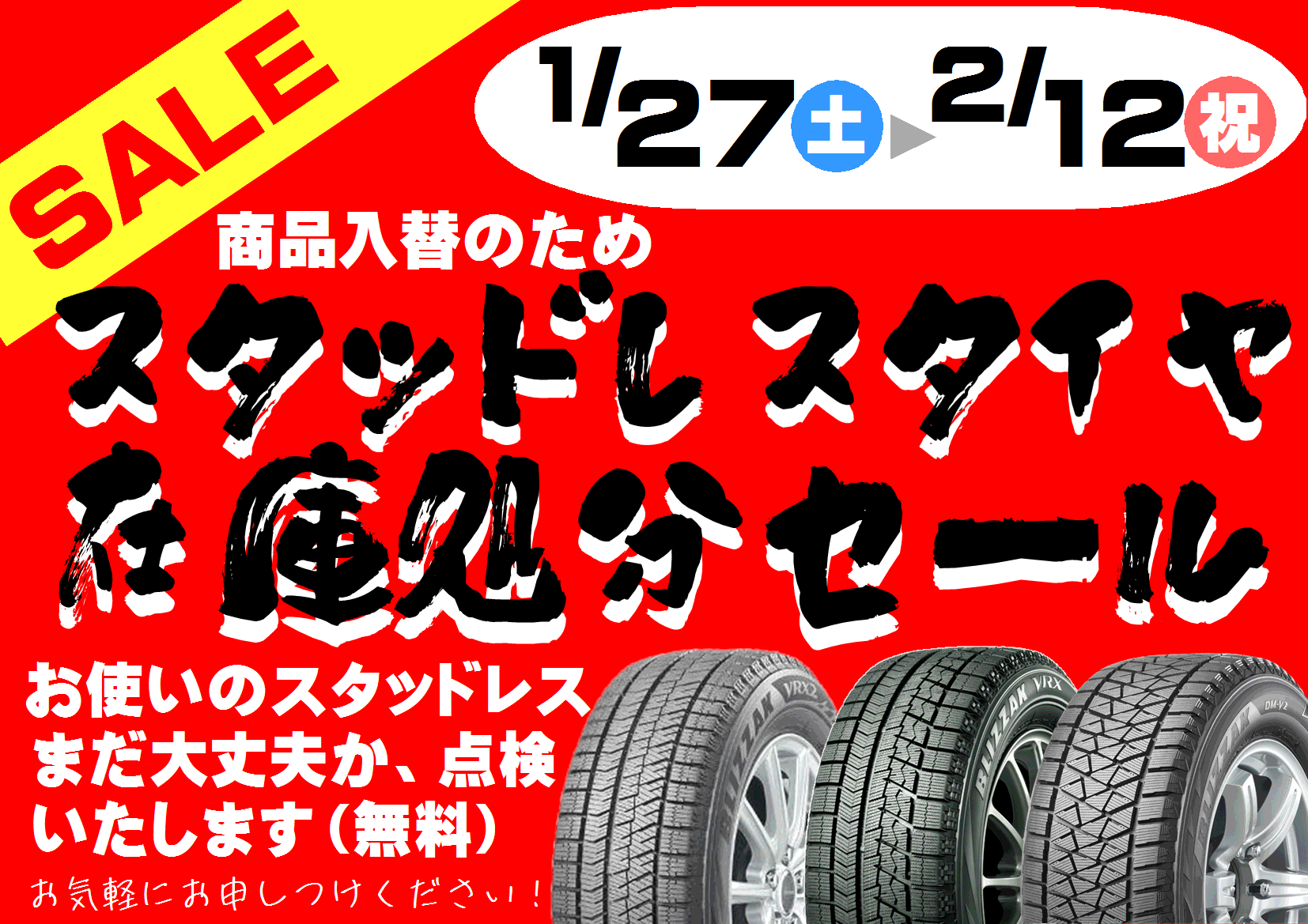 【スタッドレスタイヤ在庫処分セール】