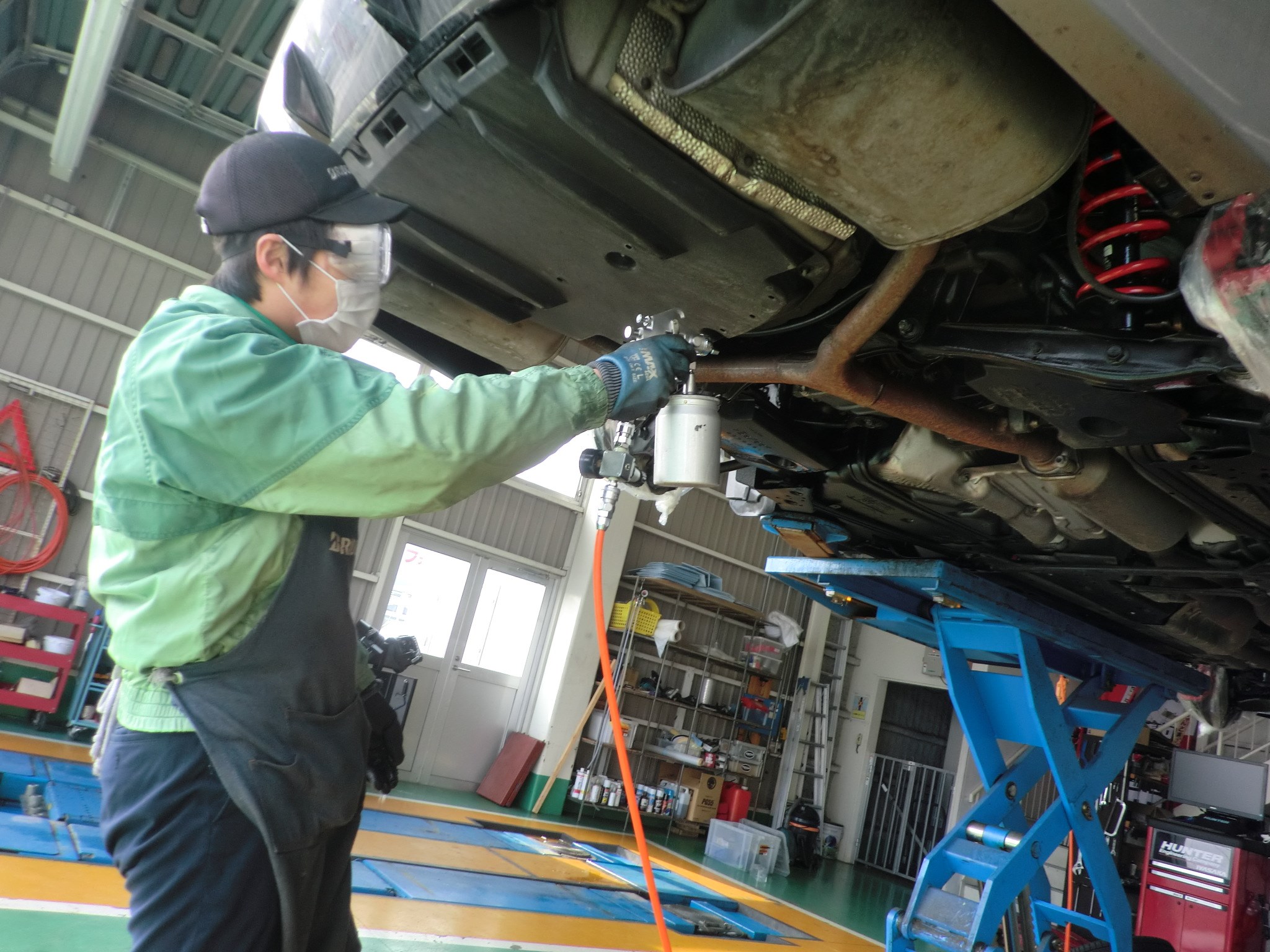 下回りの防錆コーティング施工作業がありました。