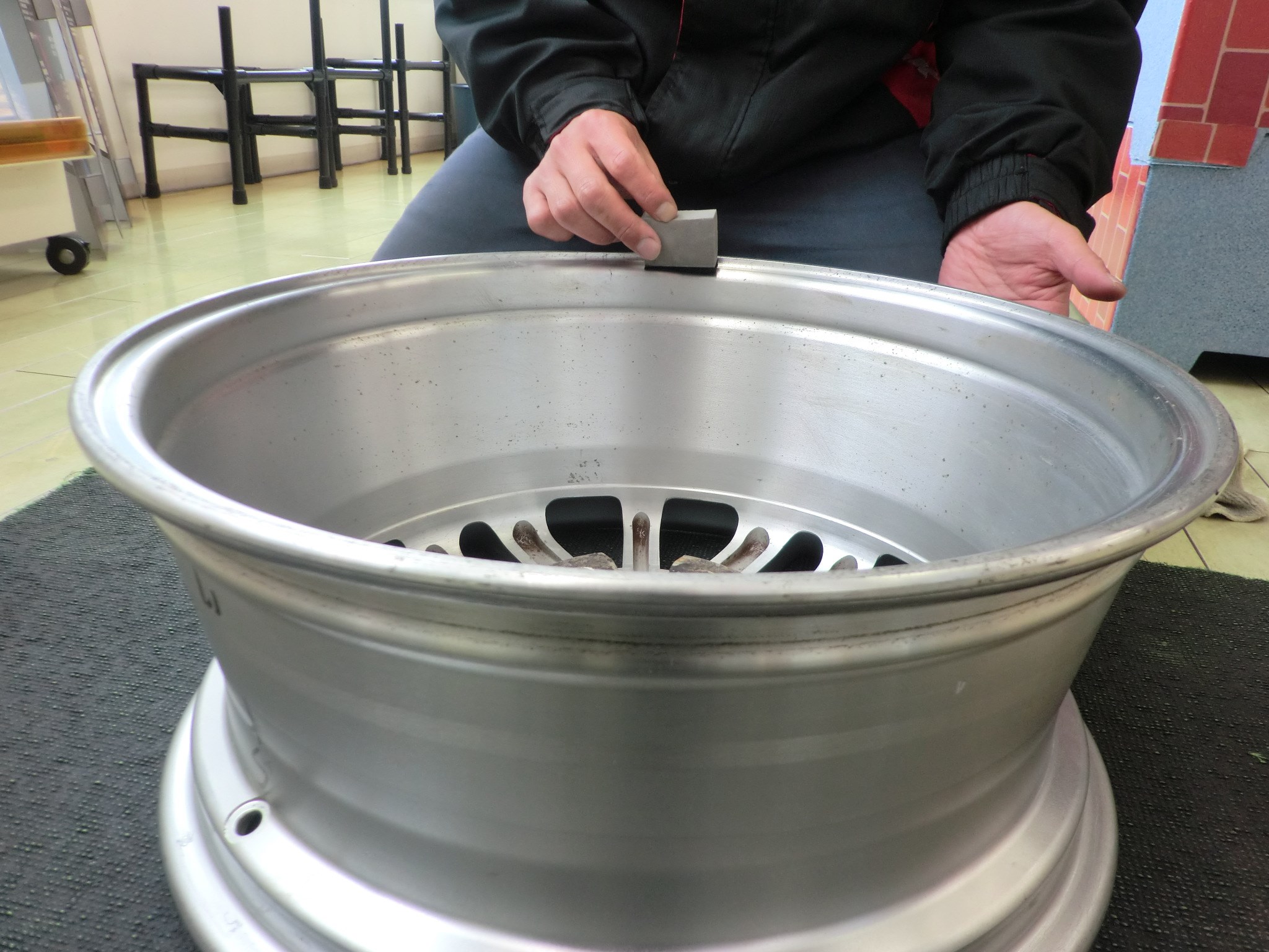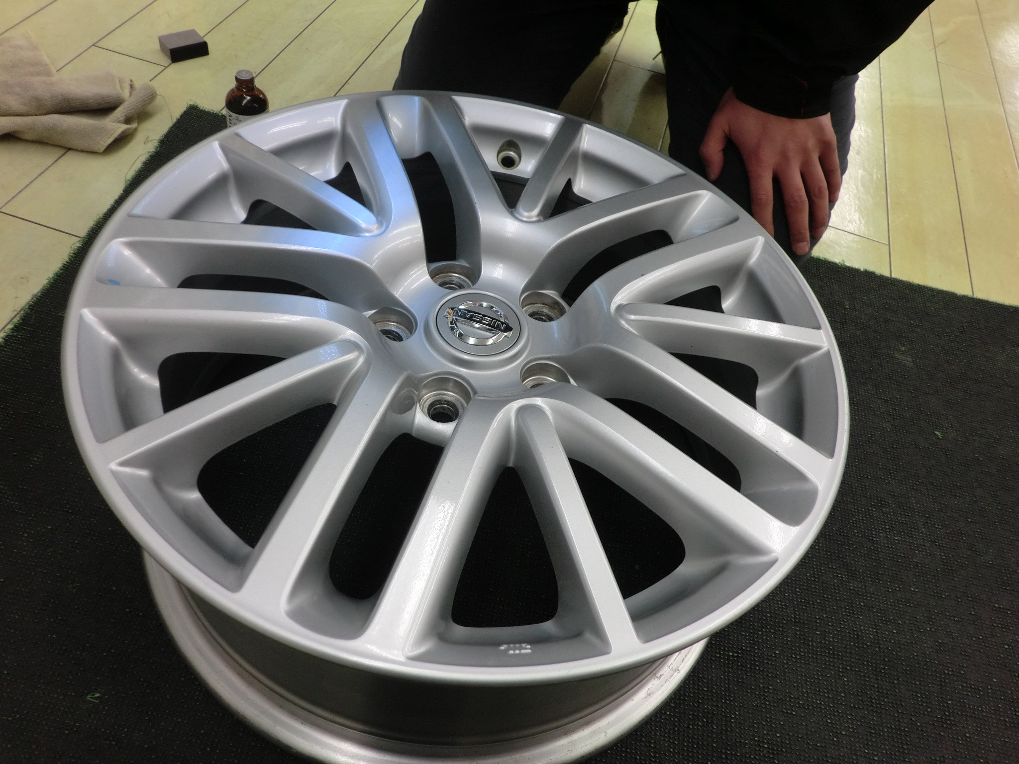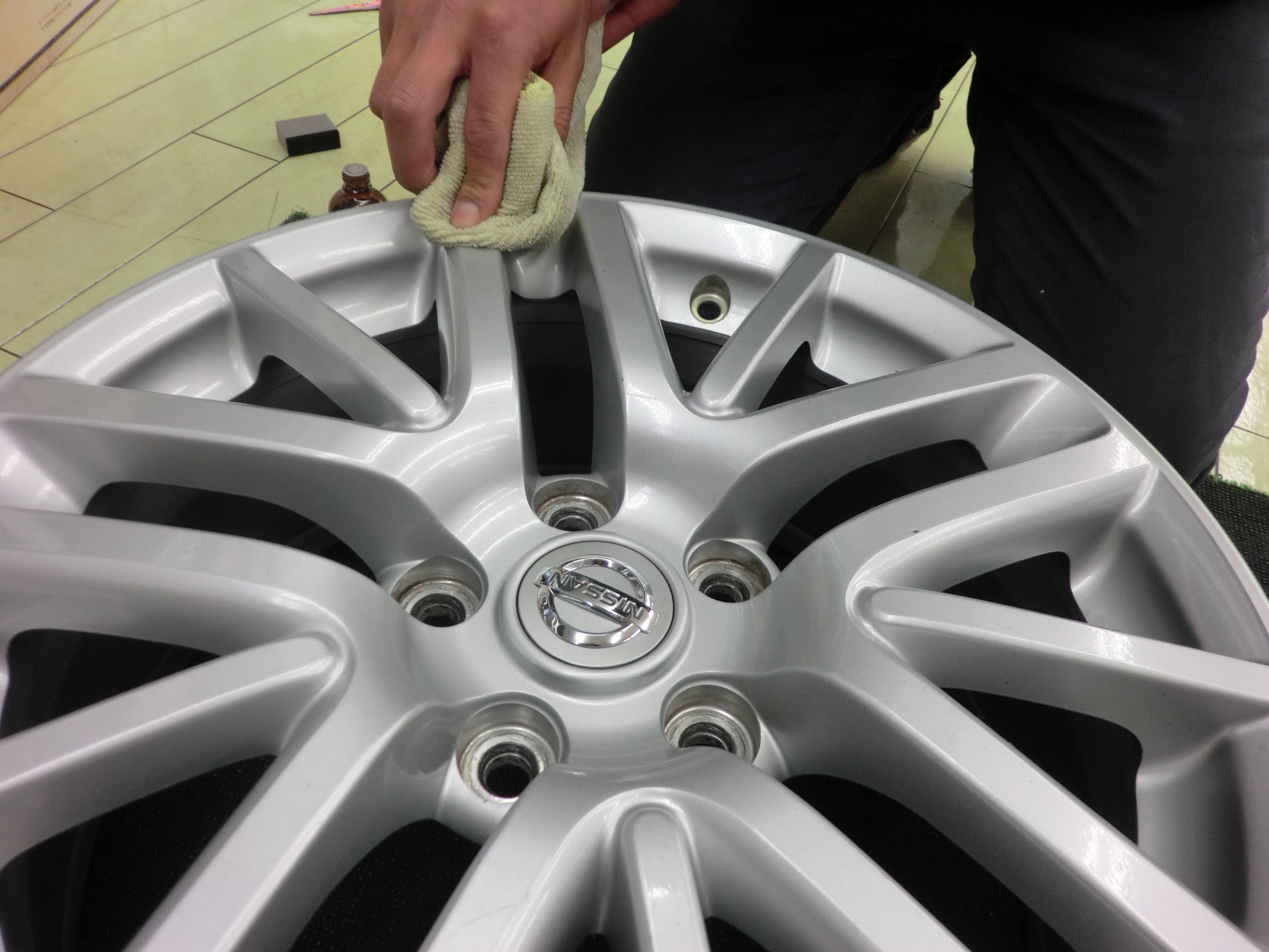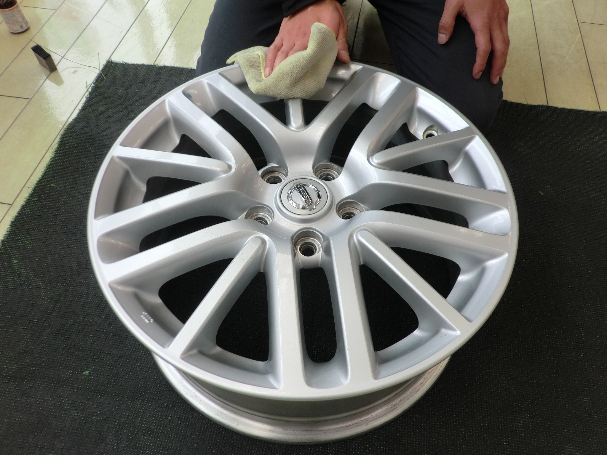 2★ ホイールの裏面にコーティング剤を塗っていきます