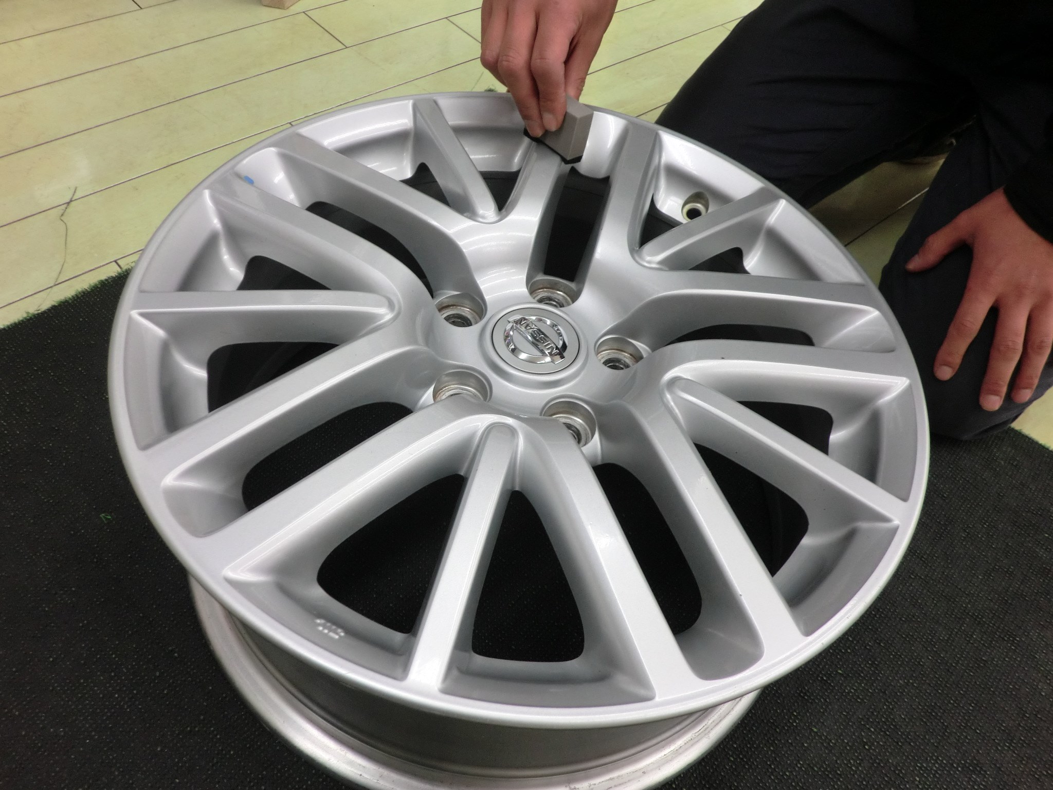 1★ まず、ホイールの表面(表・裏、両面)を拭き取り、