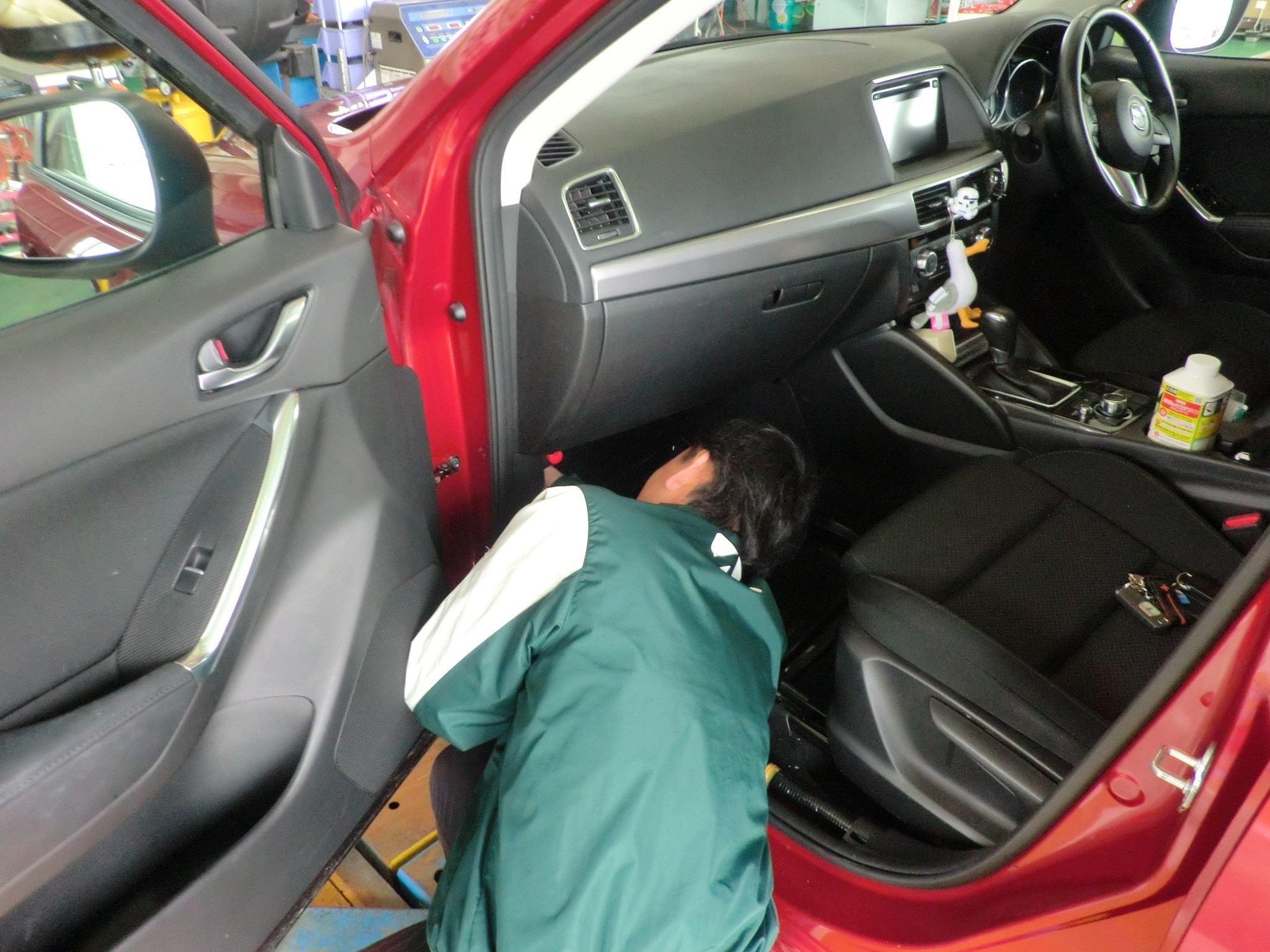 ドライブレコーダー取付け中のスタッフ伊藤☆