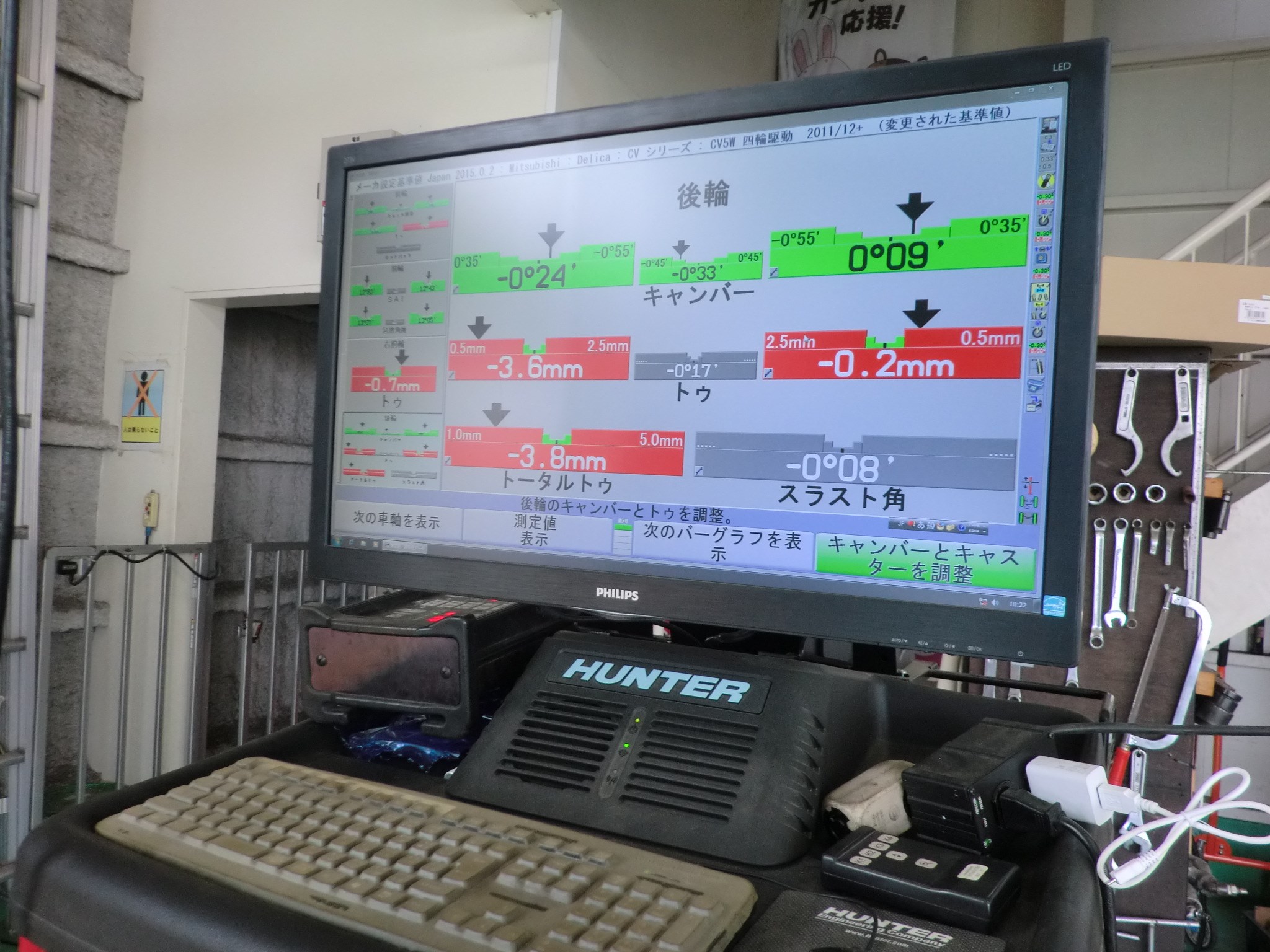 タイヤ新品交換と合わせて、アライメント作業がありました。