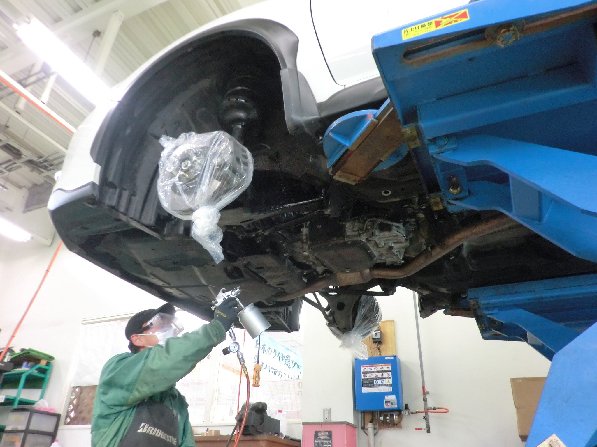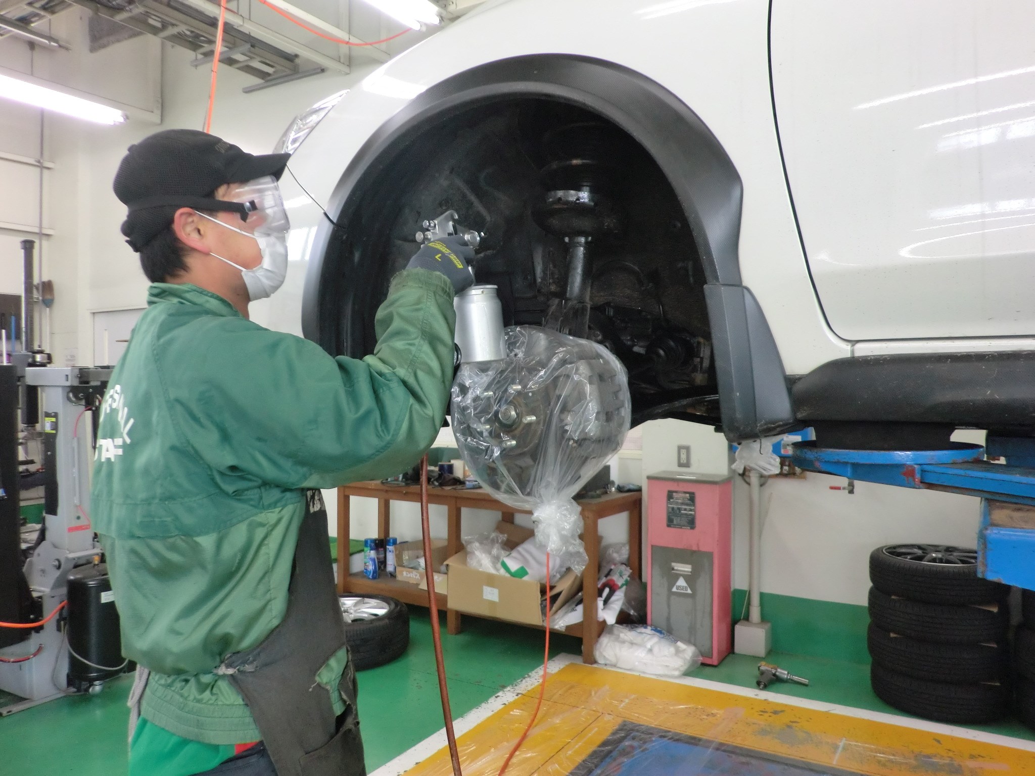 タイヤ交換作業と合わせて、足回りのサビ対策「防錆コーティング」の施工作業がありました。