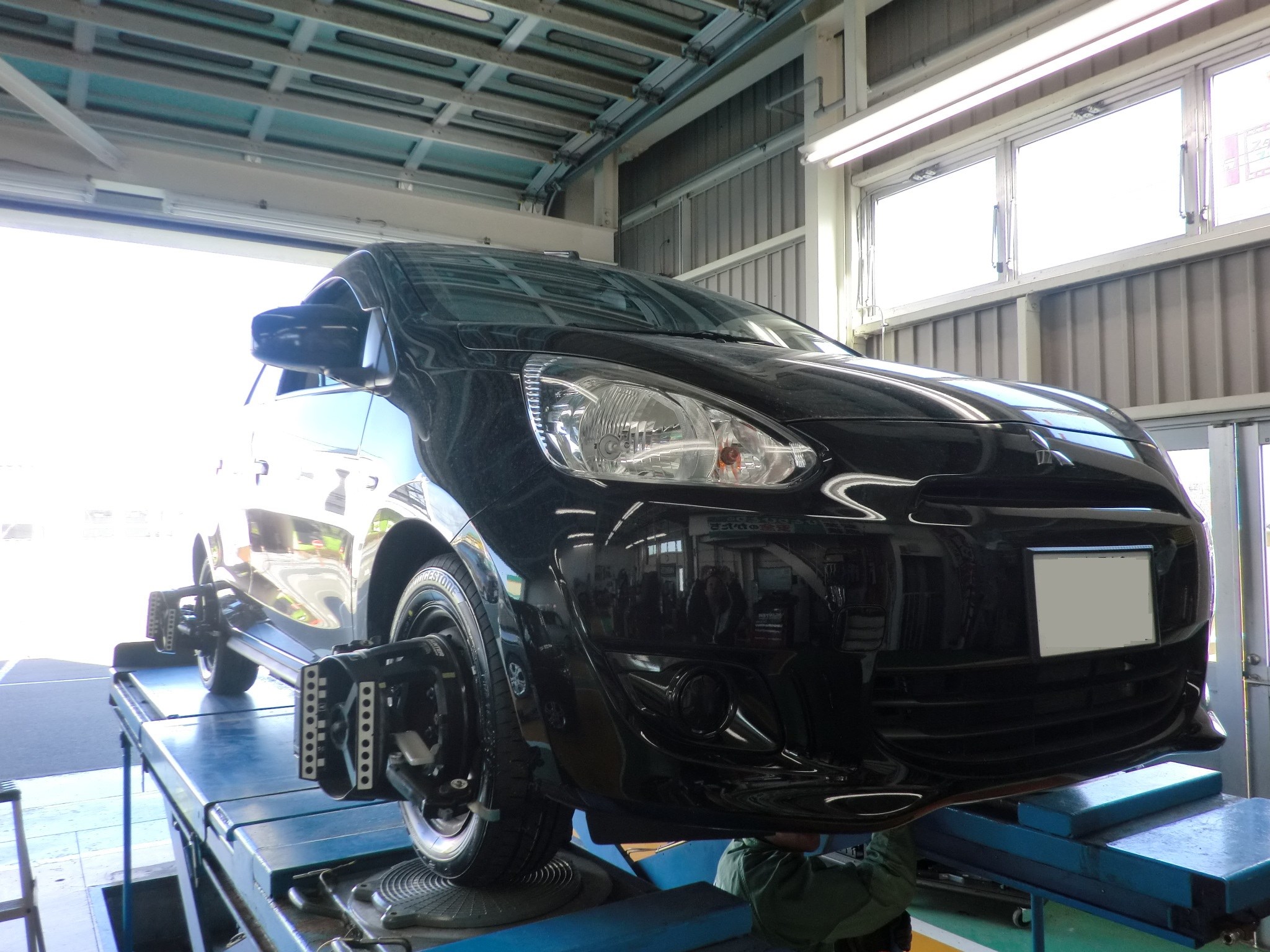 タイヤ新品交換と合わせて、アライメント作業がありました。