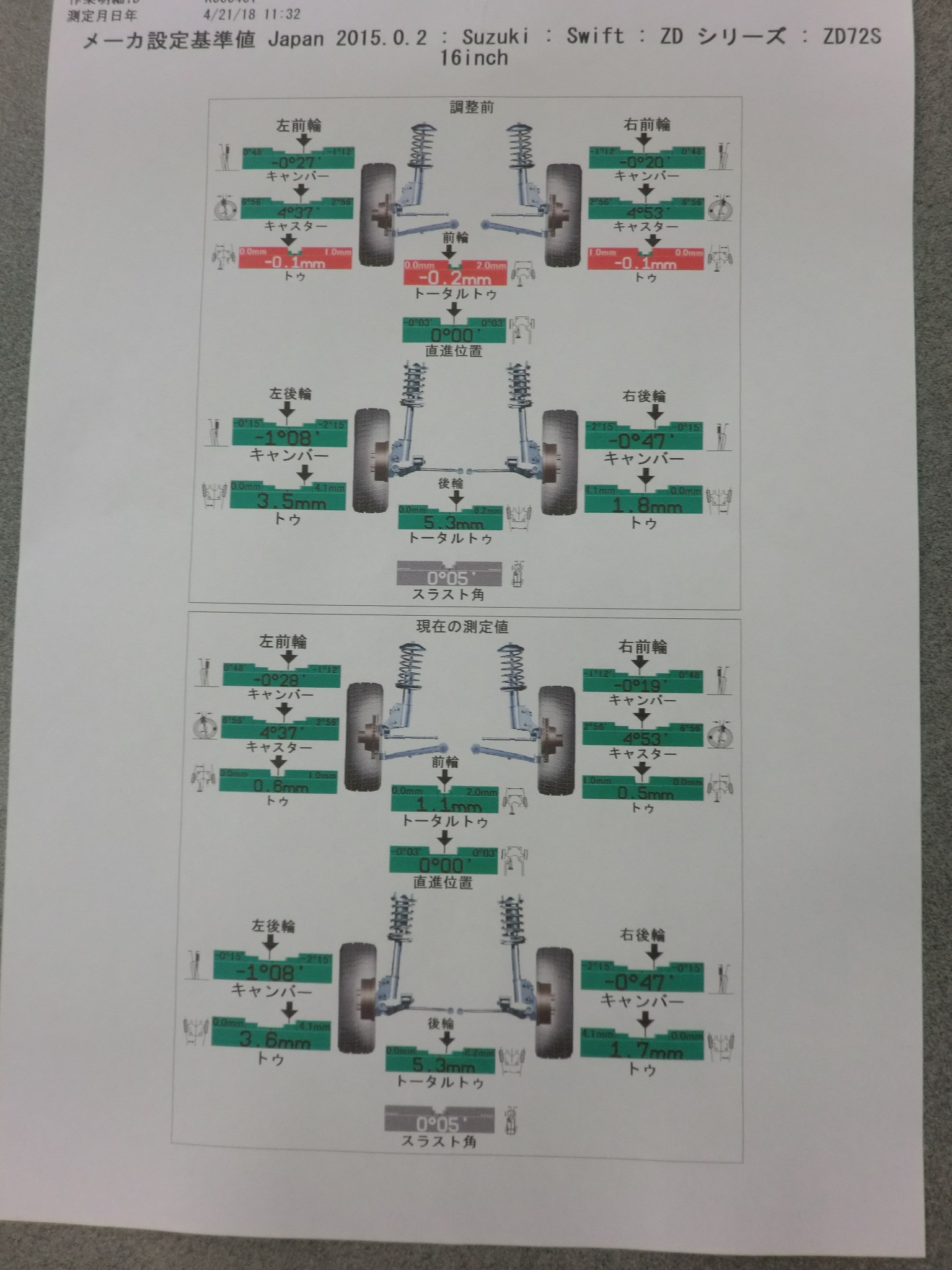 タイヤ新品交換と合わせて、アライメント作業がありました。